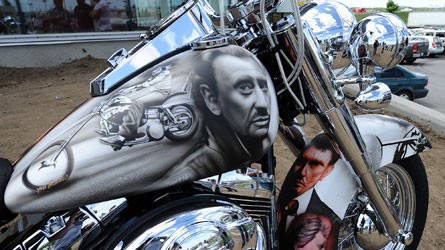Ci-dessous un fan qui a repeint son réservoir de moto en hommage à Johnny.