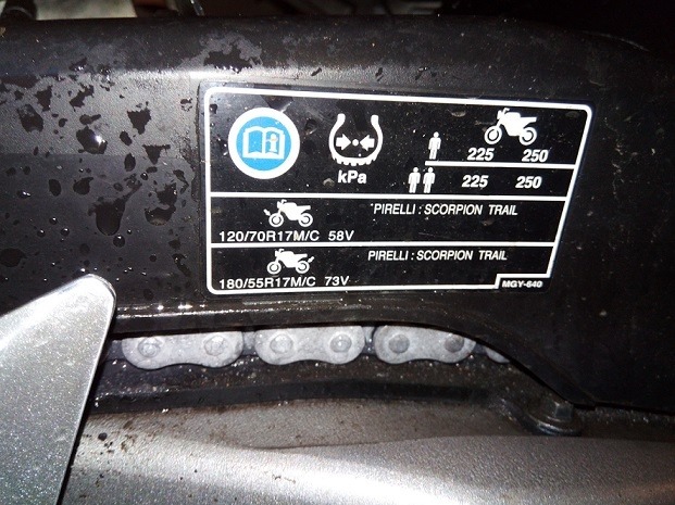 En règle générale, la pression requise pour le pneu est écrite sur celui-ci (sur le flan du pneu) et aussi sur votre manuel d’utilisation et sur pas mal de moto japonaises la pression est indiquée sur votre machine.